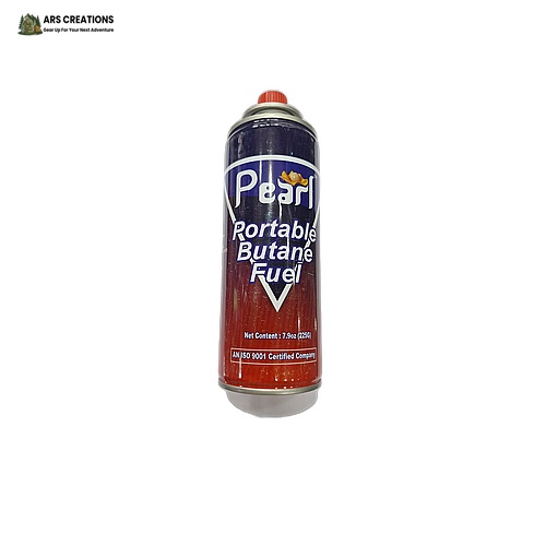 A convenient and extra-long-lasting Pearl portable butane fuel canister from ARS Creations, providing 225g of high-quality fuel with an additional 30% extra. Ideal for portable gas stoves, camping, and outdoor cooking needs.